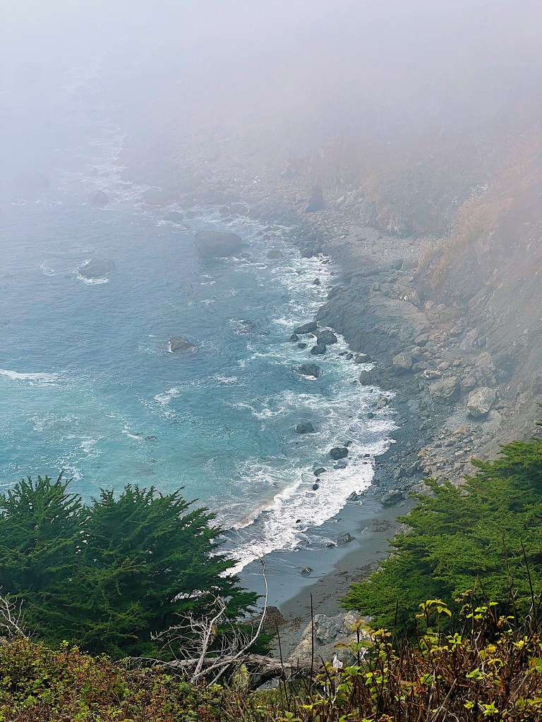 Our original intent had been to follow the Pacific Coast Highway (PCH) all the way up to Carmel, but it has been closed for almost three years, due to a slip and isn’t due to open until March of next year. So we drove as far north as Salmon Creek Falls, where we went for a short hike.