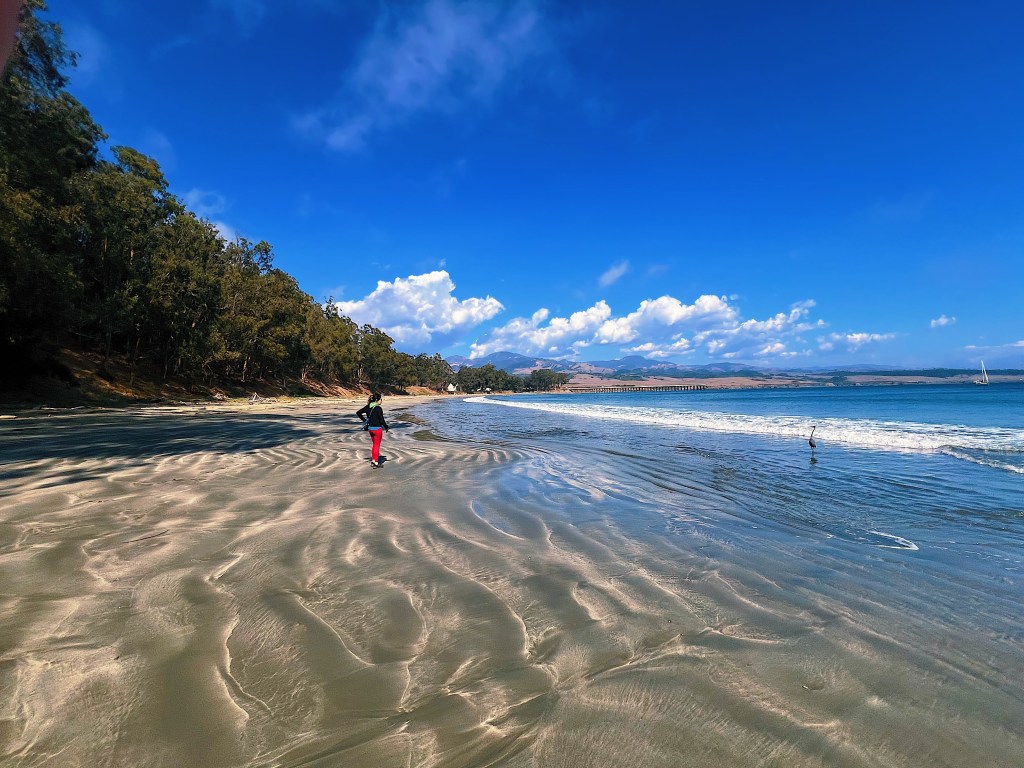 From Ragged Point we drove down out of the misty hills into the sunshine of Hearst Memorial Beach in San Simeon. San Simeon is most famous as the home of Hearst Castle, the palatial hilltop home of William Randolph Hearst, the publishing tycoon. The castle and Hearst’s lifestyle were satirized by Orion Welles in his classic 1941 movie, Citizen Kane. We had been to the castle before so didn’t revisit, opting instead to go for a walk along the beach that was part of the Hearst ranch.