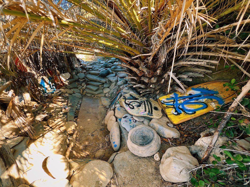 Long ago, the Agua Caliente Band of Cahuilla Indians established communities in Palm Canyon and the adjacent canyons. Here is a recreation of the small homes they built called ‘Ewaa