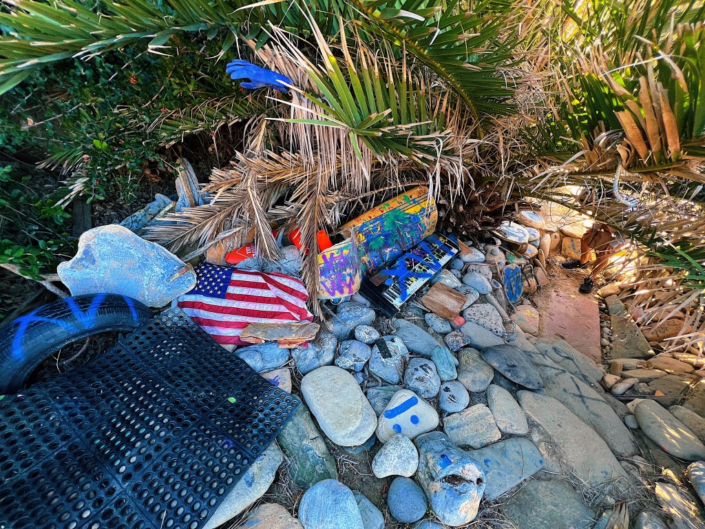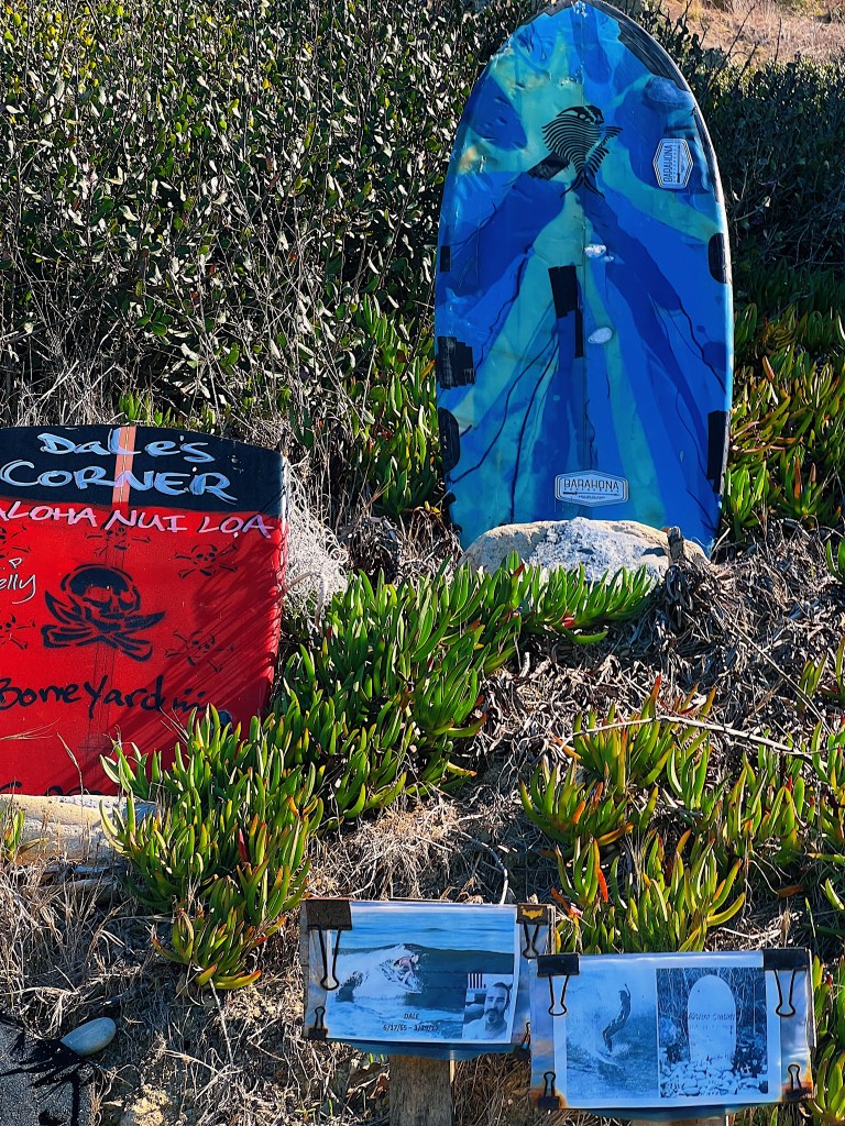 We came across a small shelter that included what looked to be a tribute to a departed surfing buddy.