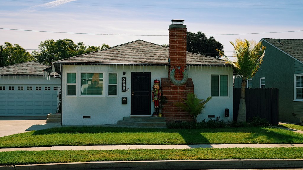 On another beautiful Southern California winter’s day, while much of the rest of the country was enduring massive snow storms, we went on a walk through Lakewood which borders our neighborhood in Long Beach. As we have mentioned in previous posts, Lakewood sprung up after World War II to accommodate veterans returning from the war. Today it is a pleasant quiet neighborhood of small single family homes, some of which have quirky touches.