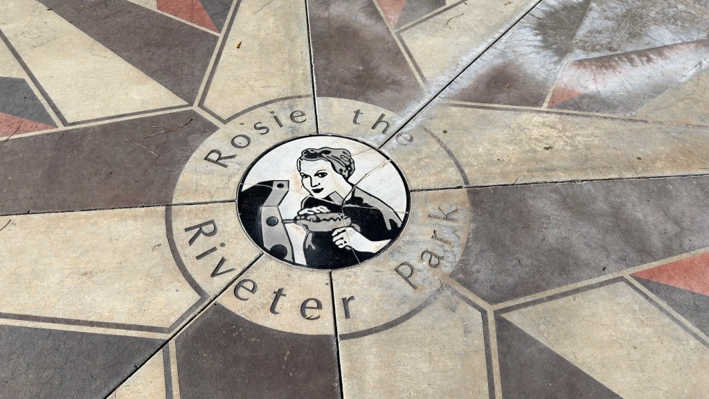 Rosie has not an actual woman but was created as wartime propaganda to depict the many women working in the war effort. Later she became a feminist symbol, especially during the women’s movement of the 1960s and 1970s. Many of the women she represented worked at the Douglas factory and there is now a small park in Lakewood memorializing these women.