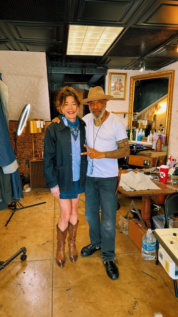 If you find yourself in the Arts District, definitely drop in and say hi to Von Brinkley, who designs and sews his own clothes out of his little shop. Lauren bought a very cool jacket. Here she is modeling it with Von.