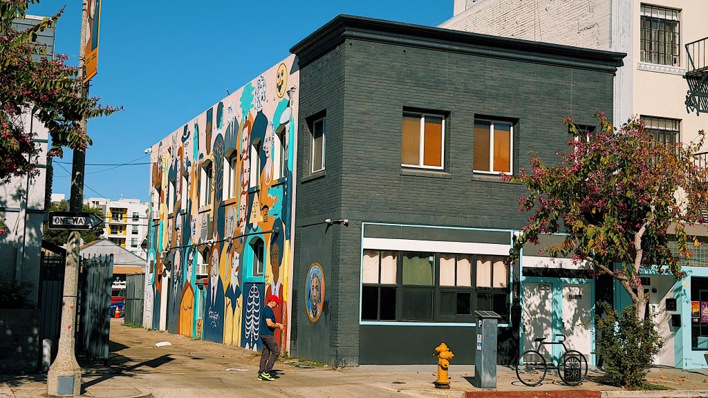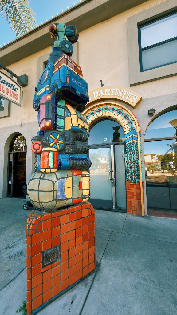 Long Beach suffered a devastating earthquake in 1933, causing 120 deaths and destroying or damaging many of the downtown buildings. When the city was rebuilt afterward, many of the buildings were done in the Art Deco style that was popular at the time. A similar situation occurred in the town of Napier in New Zealand where a powerful earthquake in 1931 destroyed the town and killed 256 people. Now both places have become meccas for Art Deco enthusiasts. We went for a walk around the East Village Arts District of downtown Long Beach, checking out the buildings and the small independent stores.