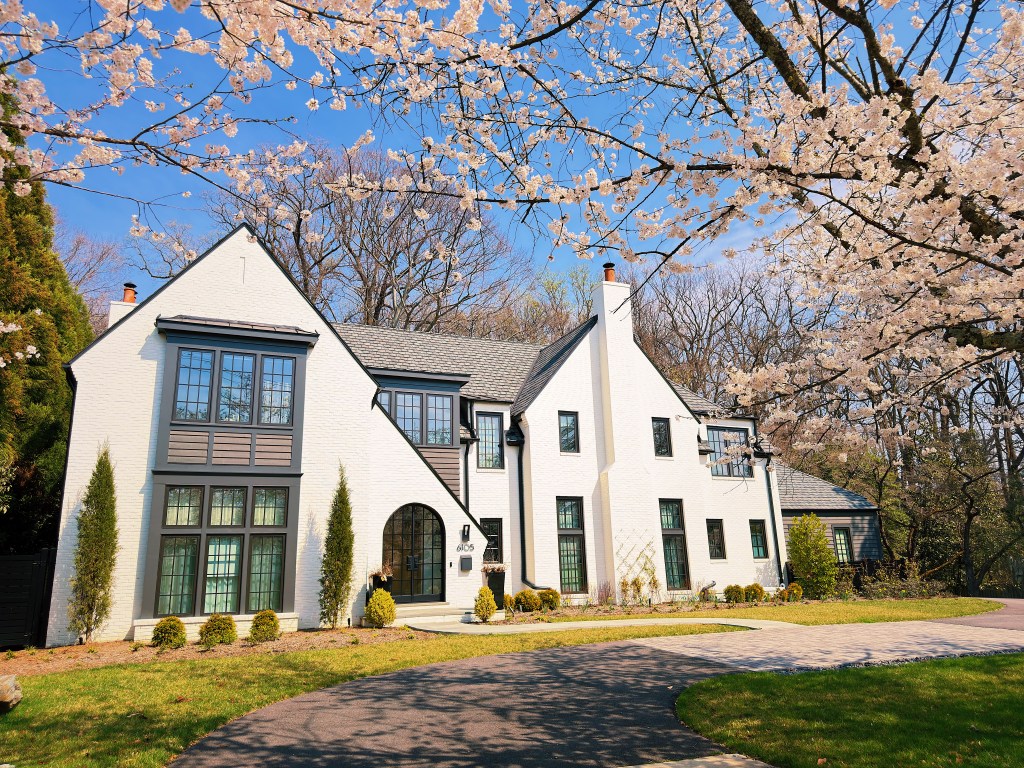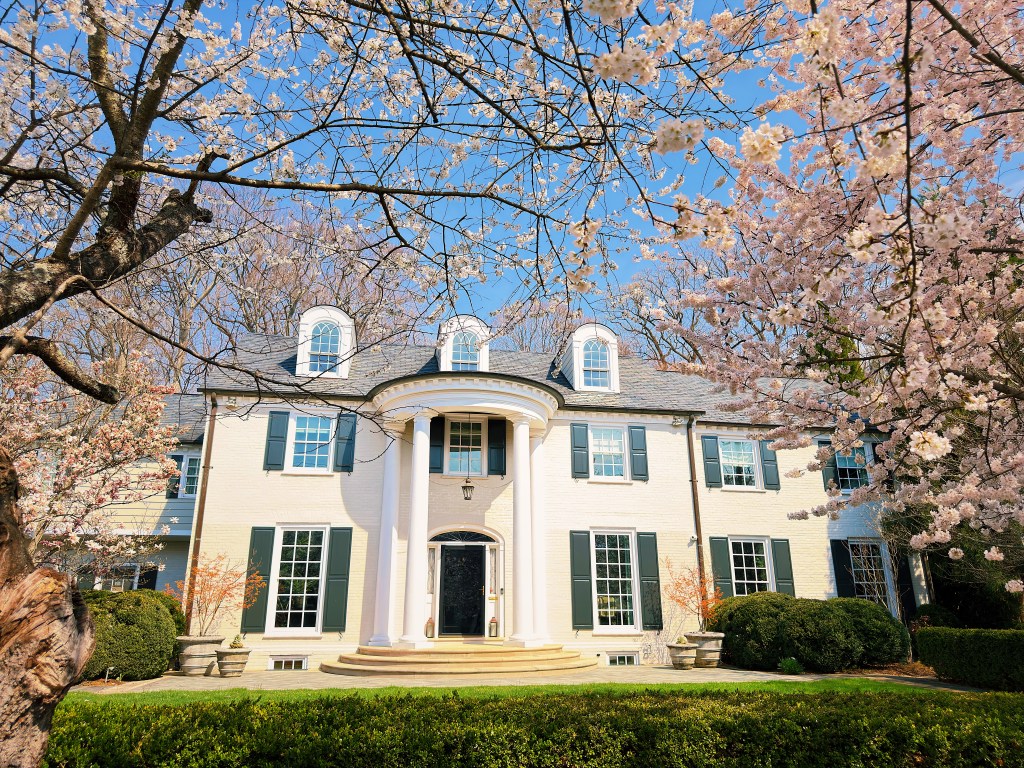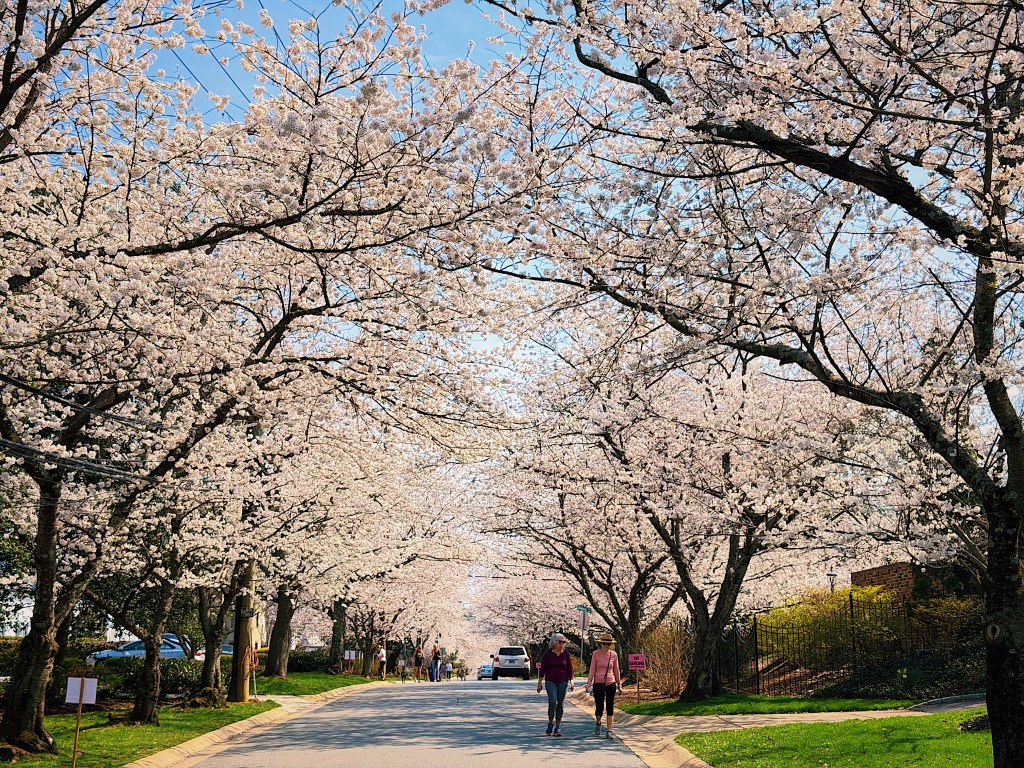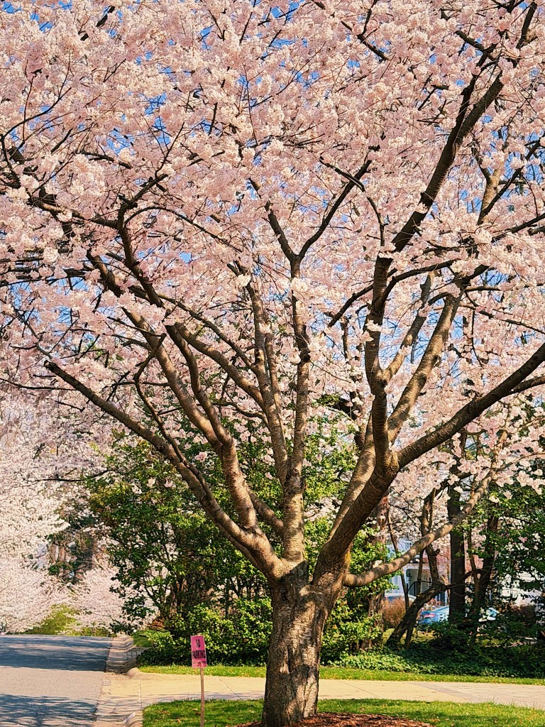 It is cherry blossom season here in Washington DC and crowds are gathering downtown to stroll under the trees that rim the tidal basin. Less well known as a spot to get your cherry blossom fill is the Maryland suburb of Kenwood. Over 1,000 cherry trees were planted in Kenwood in the 1920s and 1930s by the developers before they even built the first homes. While not quite as chaotic as downtown, the beautiful neighborhood of large stately homes still attracts sizable crowds. A windy or rainy day can quickly bring an end to the bloom, so with rain in the forecast we headed over to Kenwood during what was being advertised as the blossoms peak day.