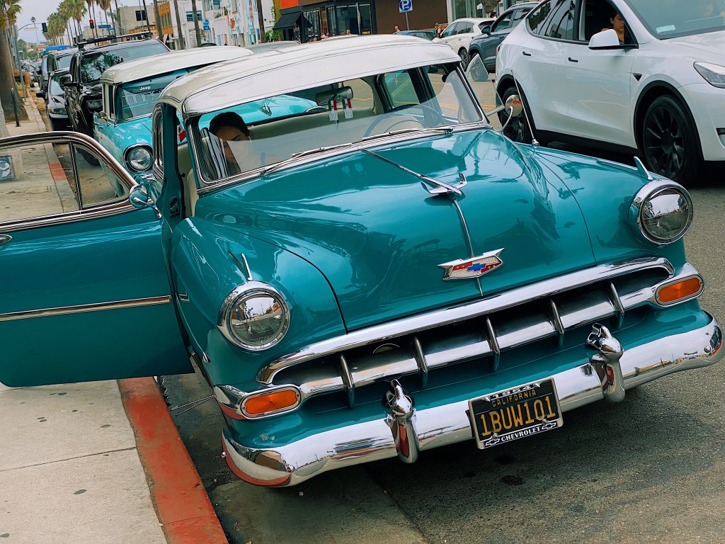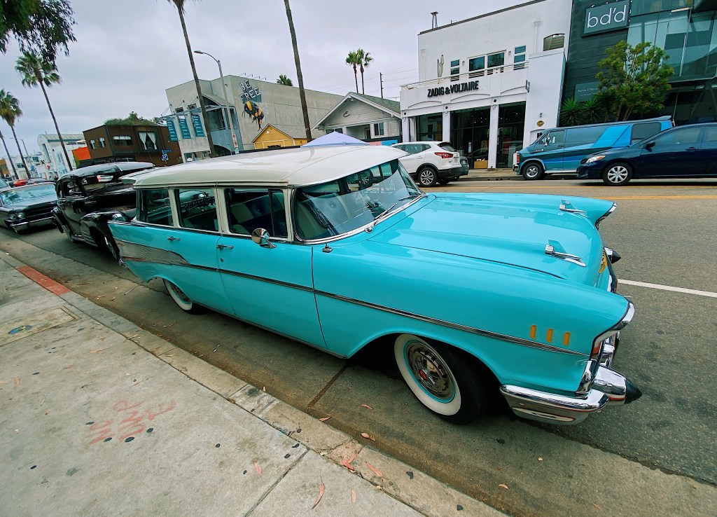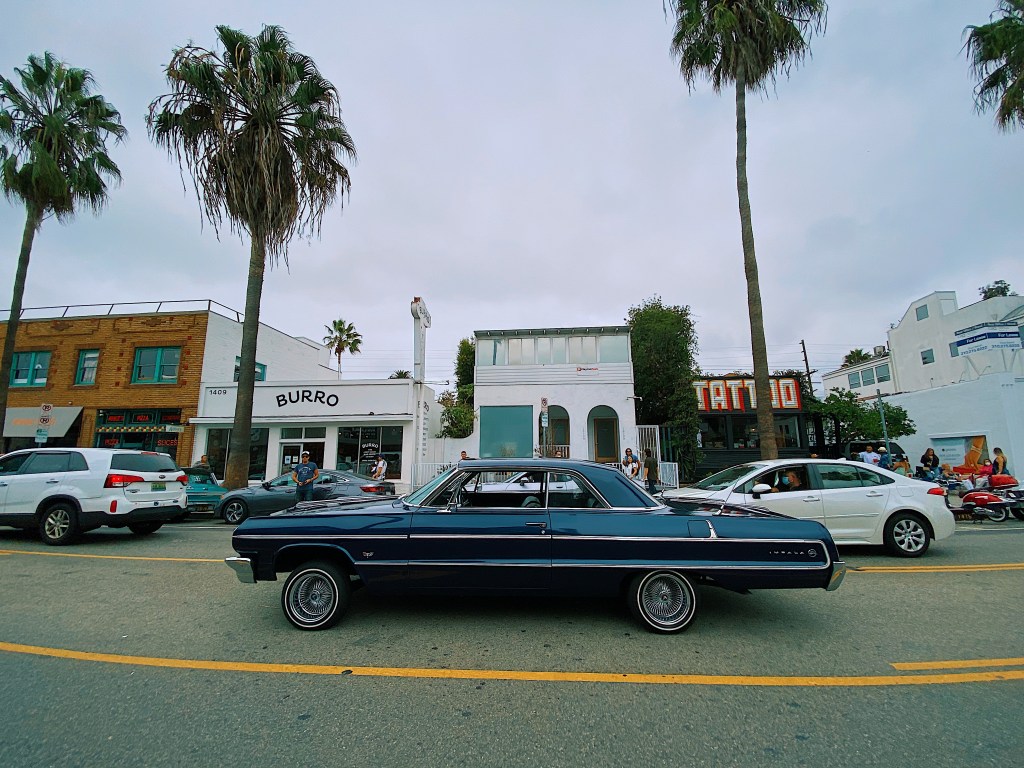We then headed inland to Abbot Kinney Boulevard, a mile-long road lined with trendy shops, restaurants and galleries. Happily, there was a gathering of Lowriders while we were there. Lowriders are customized cars with low bodies that are also equipped with hydraulics so they can bounce up and down at the driver’s discretion. They are closely identified with LA, having originated there in the mid-1900s in the hispanic community. But now they have become popular throughout the USA and internationally. They have a particularly strong following in Japan, where there are more than 200 lowrider clubs.