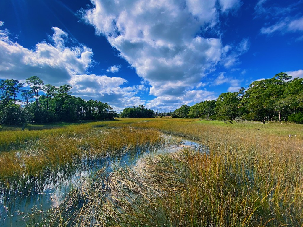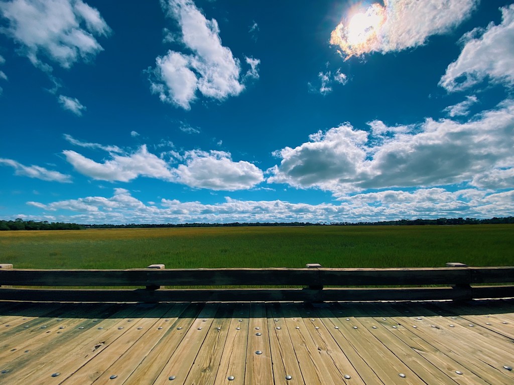 On our next day on Kiawah, Jasper and Eve led us on a long bike tour of the island. We stuck to the more sheltered landward side of the island. This part of South Carolina is called the low country and it’s easy to see why. The area is very flat and we enjoyed the beautiful views of the extensive marshlands that sit between the island and the mainland.
