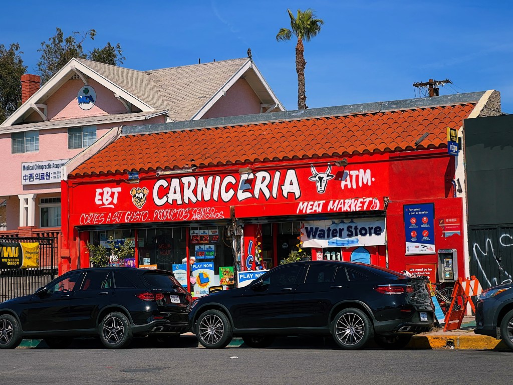 On another beautiful sunny LA day, we celebrated having avoided the winter storm currently hitting Washington by heading out on a long walk. We started out walking along Melrose Avenue.