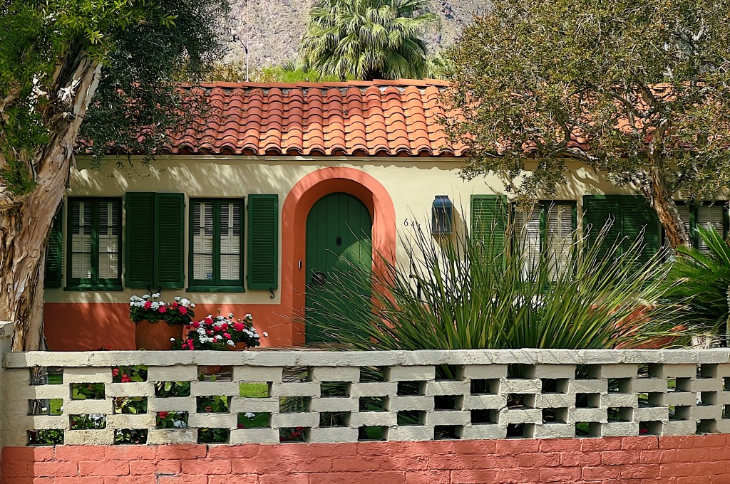 We drove down to Palm Springs for the weekend. Unfortunately, due to the infamous LA traffic, a trip that would normally take two hours, took over four. Once there, we explored the town and neighboring canyons. Our first walk was through the Old Las Palmas neighborhood. The neighborhood dates back to the mid 1920’s and over the years has been the home of numerous celebrities, including Leonardo DiCaprio, Lucille Ball, Kirk Douglas, Liberace and Elizabeth Taylor. There were many beautiful homes, although most were hidden behind high hedges, walls and ornate gates.