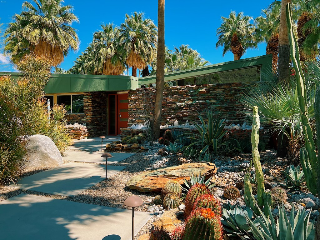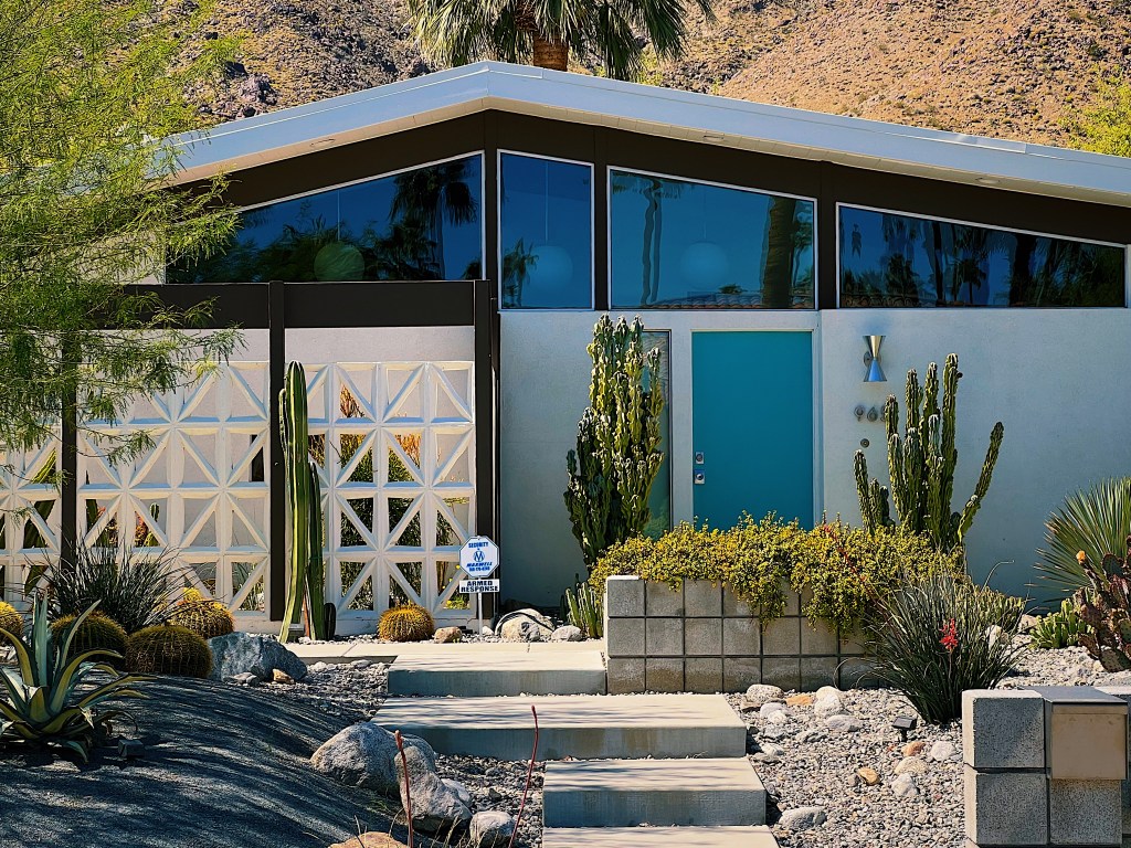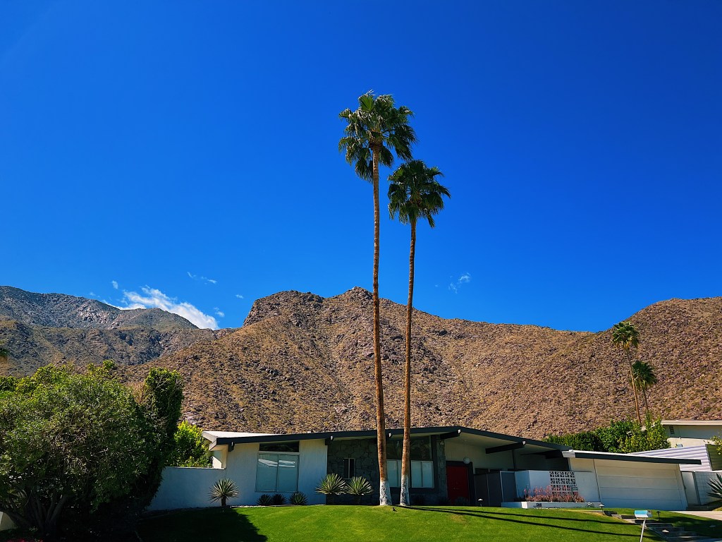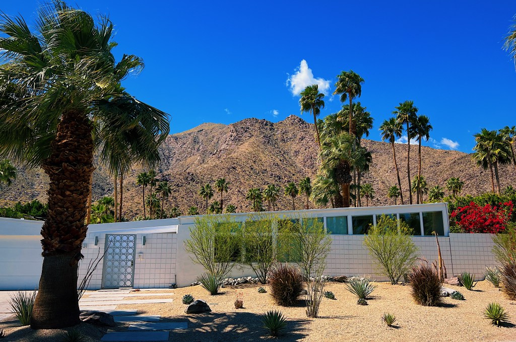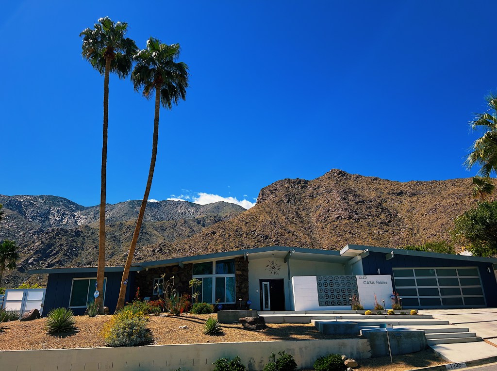 Today we moved on from Old Las Palmas to the adjoining neighborhood of Vista Las Palmas. It is a mecca for lovers of midcentury modern architecture lovers. In the middle of the twentieth century, the firm of Palmer and Krisel, as well as the architect Charles Dubois designed approximately 350 homes in the neighborhood, including Krisel’s iconic ”butterfly” roof houses and Dubois’s distinctive ”Swiss Miss” A-frames. Like neighboring Old Las Palmas, it has been the home of numerous celebrities, including Dean Martin and Debbie Reynolds.