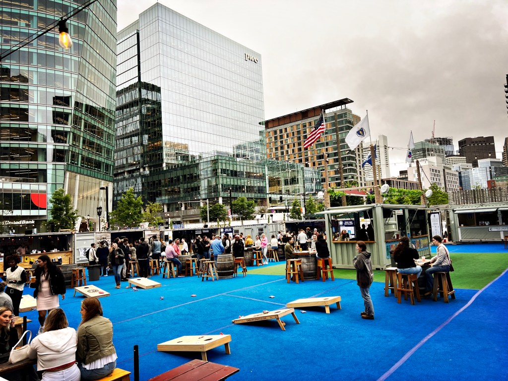 The area appears to cater mainly to the young professional crowd, with trendy pop-up stores, garden bars, outdoor yoga (complete with DJ) and a large supply of Rose wines in the neighborhood market.