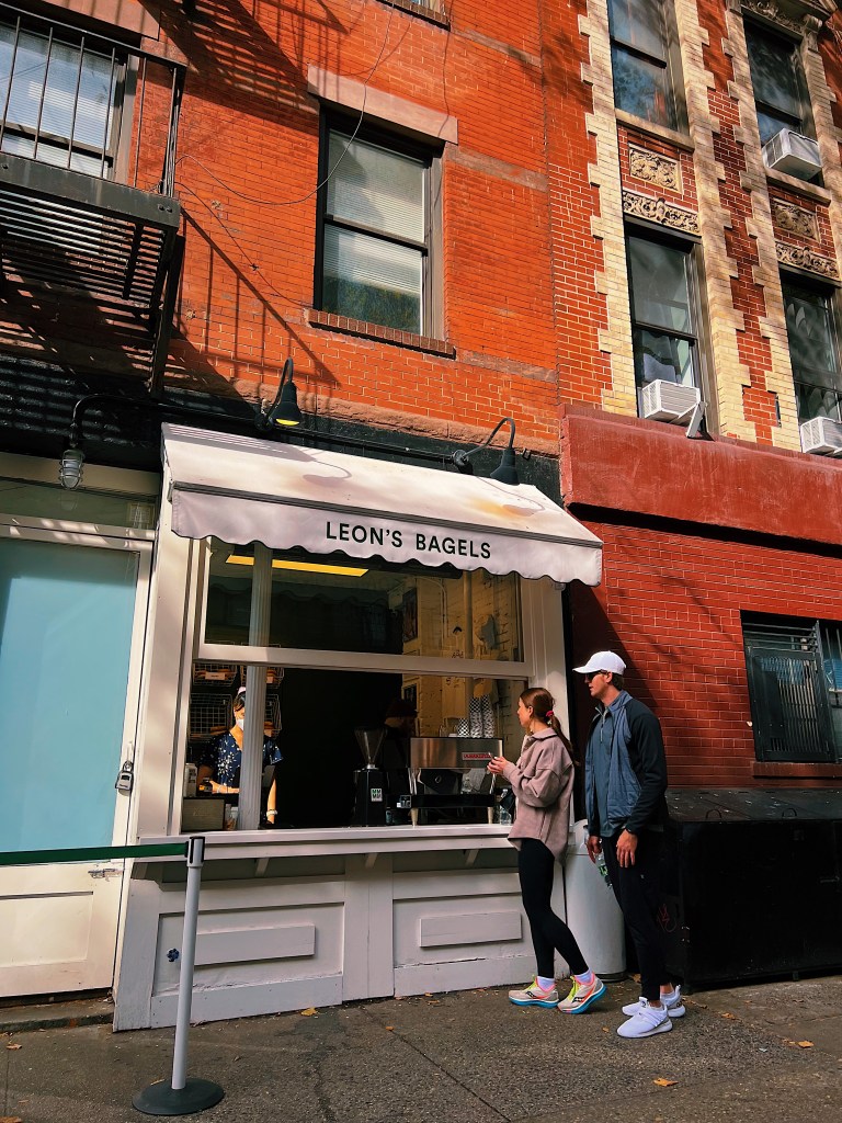 On a cool sunny day, we headed up toward The Whitney Museum in the Meatpacking District. Along the way we passed through Greenwich Village, where Jake stopped at Leon’s for a bagel and lox, the quality of which confirmed what New Yorkers always claim, that nowhere else in the world do the bagels compare with those in New York. Apparently, it has something to do with the water here.