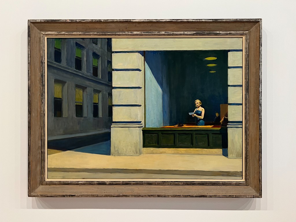 It is also home to one of NYC’s newest and best museums. Designed by Renzo Piano and completed in 2015, The Whitney contains a huge collection of modern American art. While we were there, the main attraction was a large exhibit of Edward Hopper’s New York paintings. Many of his paintings are rather voyeuristic, looking through windows at people going about their lives. Staying in New York, we could see where Hopper got the inspiration for his work. Just that morning we looked out from our hotel room and right across the street into an office where a woman and man were working. It was very reminiscent of Hopper’s painting Office at Night, painted in 1940.