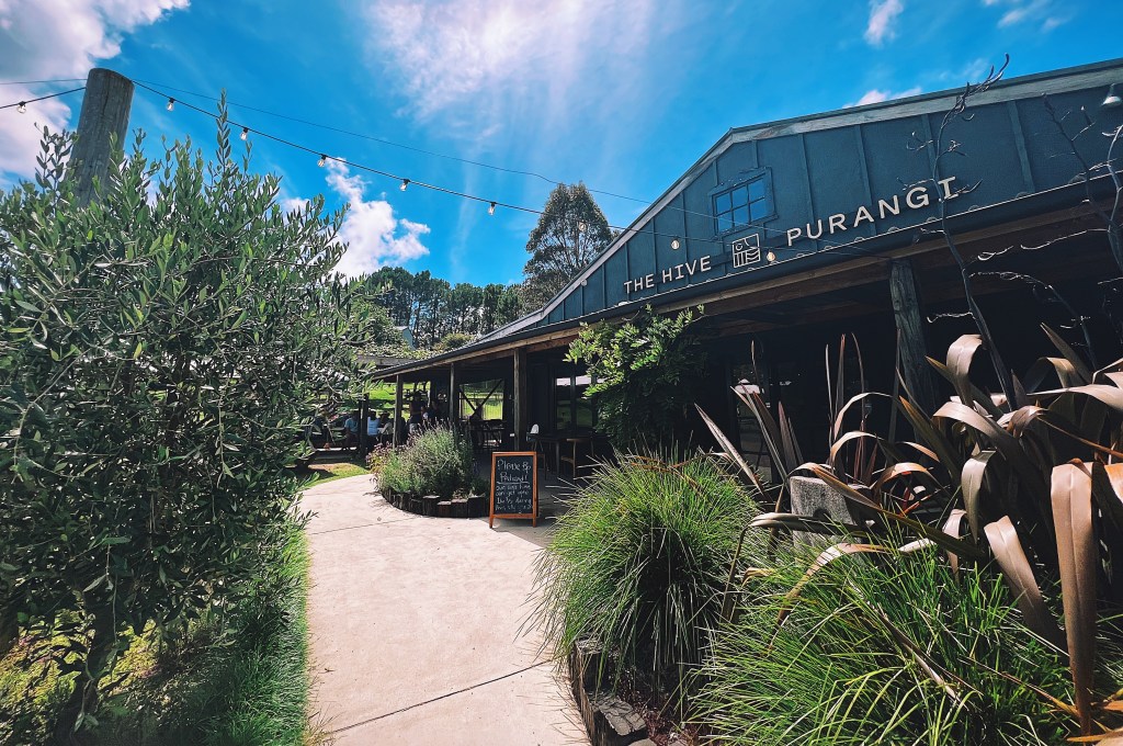 In the afternoon, we hopped in the car and drove an hour further north to visit our dear friends Marcus and Vasu and their whanau (family) who were renting a bach at Kuaotunu. Along the way we stopped for lunch under the kiwi fruit vines at the Hive.