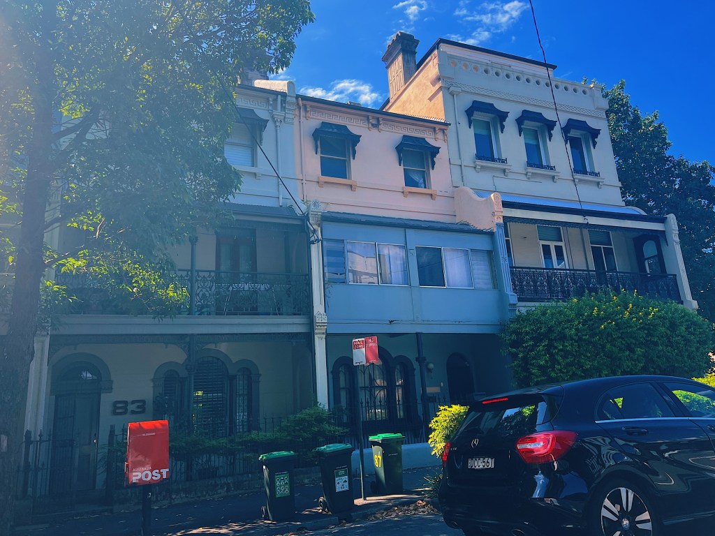 Back in 1983, we lived in Sydney for a couple of months. Our home was a one bedroom bedsit in the inner-city neighborhood of Redfern. Back then Redfern had not gentrified and was a little rough around the edges. In fact, there was a riot in the neighborhood while we were there. We happened to be passing through Redfern on our way to the city and asked the cabbie to drive by our old home. We lived in half of the second floor of the middle home (the place just above the red street sign). It looked much the same. Our home was a one room bedsit with mice in the walls and a bathroom we shared with the other tenants, who we remember as mainly alcoholic old men. Being young, we weren’t particularly concerned at the less than salubrious surroundings.