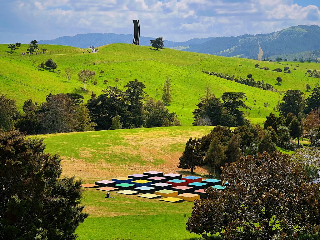 Transcendence, Rado Kirov (2017)Jacob’s Ladder, Gerry Judah (2017)88.5 degrees ARCx8, Bernar Venet (2012)A Fold in the Field, Maya Lin (2013)The Gibbs homesteadArches, Andy Goldworthy (2005)Dismemberment, Site 1, Amish Kapoor (2009)Sea / Sky Kaipara, Graham Bennett (1994)Horizons, Neil Dawson (1994)A curious ostrichRed Cloud. Confrontation in Landscape, Leon van den Eijkel (1996)Enjoying the view, The Mermaid by Marijke de Goey (1999) in the distance crossing the pondTe Tuhirangi Countour, Richard Serra (1999/2001)Sentinels, Andrew Roger’s (2017)Untitled, Richard Thompson (1994)Easy K, Kenneth Snelson (2005)Tango Dancers, Marijke de Goey (2014)