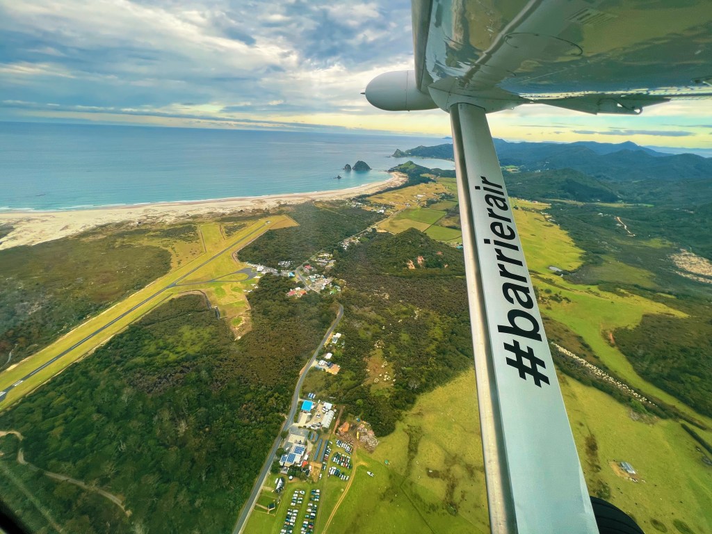 Great Barrier Island lies in the outer Hauraki Gulf, about 61 miles (100 kms) from Auckland. Neither of us had ever been there, so when our cousin, Annette, asked us to come stay at her bach, we leapt on the opportunity. The island is a long ferry ride or a short plane ride from Auckland. We took the later option. The planes are small, carrying less than 20 passengers. We were seated right behind the pilot which gave us a Birds Eye view of proceedings.