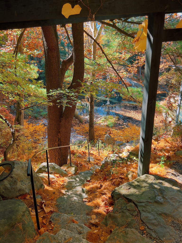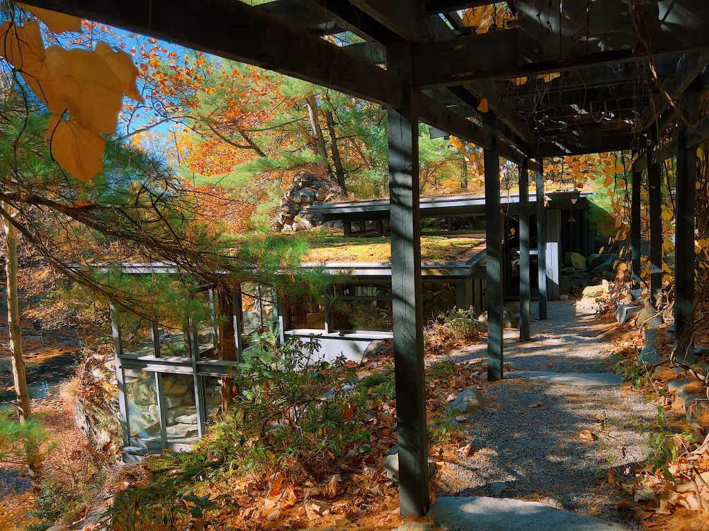 In 1942, Wright and his wife Mary (1905-1952) bought an abandoned quarry and logging site. Over the next 34 years they transformed it, building a modern home on the edge of the quarry and redirecting a stream, so that it filled the quarry making a beautiful water hole for swimming. It reminded us of Frank Lloyd Wright’s (no relation) masterpiece, Fallingwater, with its Japanese and organic influences, and the way it sat in perfect harmony within the surrounding trees and water. Here are some photos.