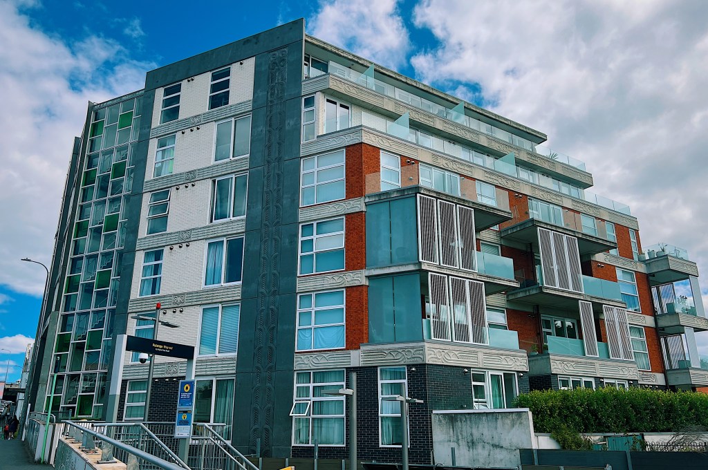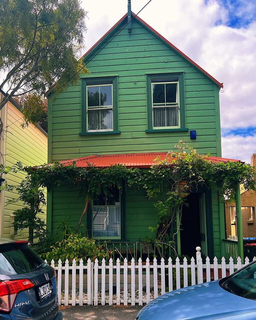 There are very few old red brick homes in Auckland, because the bricks had to be imported from Britain at great expense. So, often, what looks like red bricks are actually the local pale brown bricks covered with red cement stucco with fake mortar lines. Here is an example.
