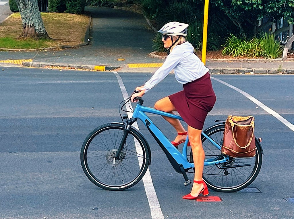 Waiting at the traffic light was the definitely the most stylish cyclist we have seen during our walks.