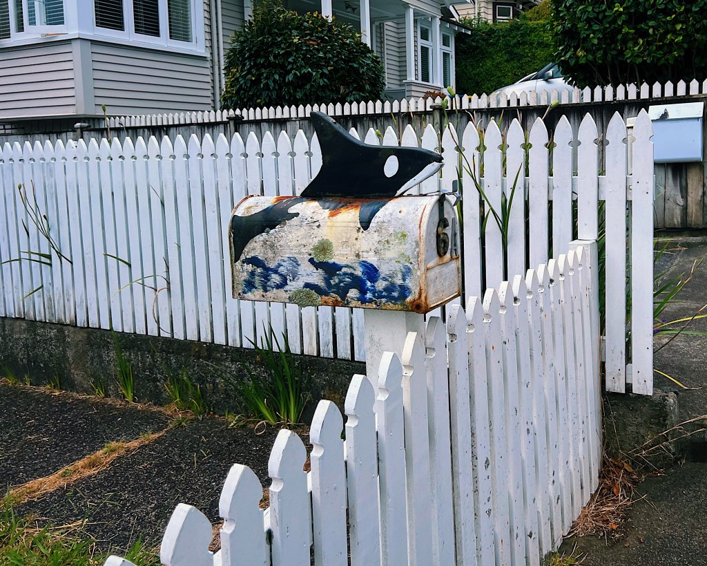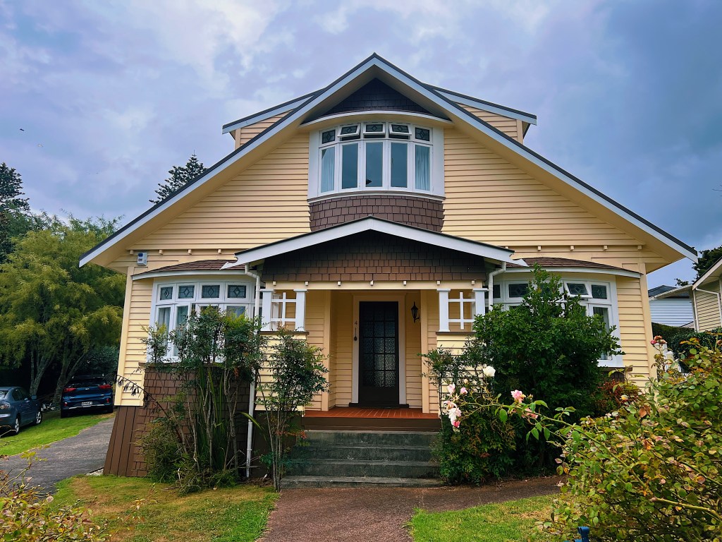 After the opening, we continued our walk. Onehunga sits beside the Manukau Harbour and the name loosely translates from the Maori to “mud flats”, which aptly describes the harbor at low tide. During the 1800s, most of the shipping coming into Auckland entered through Manukau harbour which is on the west coast but the harbour is particularly treacherous (as evidenced by the sinking of HMS Orpheus in 1863, killing 180 people). Accordingly, as ships got larger, the wider and deeper Waitemata harbour on the east coast became the primary port which it remains today. Mal’s father grew up in Onehunga where Mal’s grandfather worked at the local slaughterhouse. The toxic discharge from the slaughterhouse back then had made the water unsafe for swimming or fishing and the neighborhood became a less attractive place to live. Although Onehunga was a predominantly working class suburb for much of the twentieth century, more recently there has been some gentrification and many of the bungalows built in the 1920s have been renovated. Here are a couple of examples of the typical houses in the neighborhood.