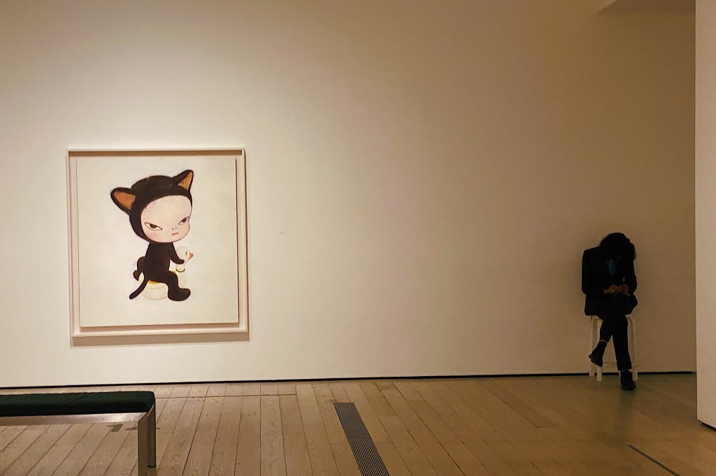 There was also a whole floor devoted to a retrospective of the work of Japanese artist Yoshitomo Nara. According to the museum’s biographical blurb, he is one of Japan’s most beloved artists. Frankly, we found the repeated paintings of young girls with piercing eyes kind of strange.