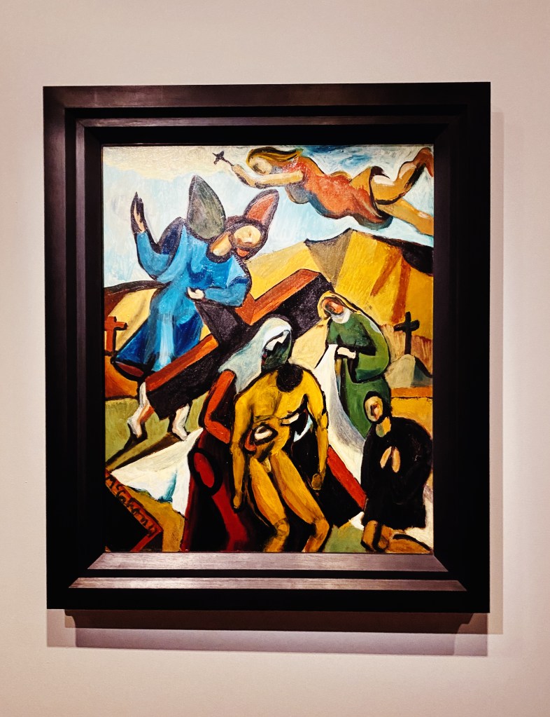If you visit Te Papa, make sure you get to the top floor where they have a collection of New Zealand art, including a gallery dedicated to the works of Colin McCahon. Living from 1919 to 1987, McCahon is regarded as New Zealand’s most important modern artist. Although he is most well known for his landscapes, many of the paintings also have religious themes. A prime example are the three paintings hanging in Te Papa that depict scenes from the Bible in a New Zealand landscape. Originally shown in 1948, audiences were shocked by the flat way that the figures were painted, the thick black outlines, and the use of text. McCahon, who wanted his work to speak directly and clearly to its audience, was influenced by sign writers and comic strips. The speech bubble in ‘King of the Jews’ was borrowed from a soap advertisement.