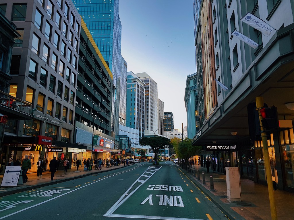 In our last post we were climbing Mt. Wellington. In this post we are actually in Wellington, New Zealand’s capital. Arriving after a short flight from Auckland, we went for a stroll along the streets that we walked over thirty years ago when we were both fresh out of university and working for the New Zealand Government. With a population of just over 200,000, Wellington is much smaller than Auckland. But with its narrow streets of tall buildings nestled between the hills and the harbour, in some ways it seems more of a city than Auckland.